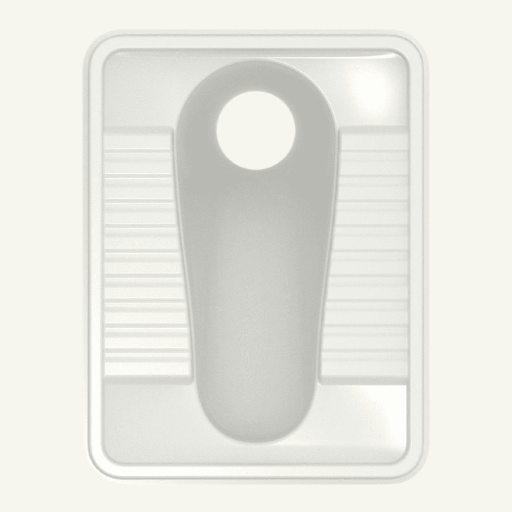 Rural-style toilet pan with foot rests, no trap door